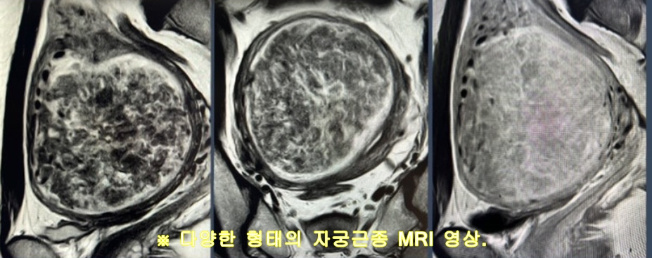 일반적 상식으로 MRI 영상으로 자궁근종을 분류하면 ⓵Type 1=자궁근종내 신호가 저강도로 골격근인 복부 근육층과 비슷한 강도를 보이는 경우(영상이 검게 보인다) ⓶Type 2=자궁근종내 신호가 골격근보다는 강하지만 자궁 근육층보다는 약한 경우(영상은 어두운 회색) ⓷Type 3=자궁근종내 신호가 자궁 근육층과 비슷하거나 더 강한 경우(영상은 밝은 회색이거나 하얗다) 등 3종류로 볼 수 있다.